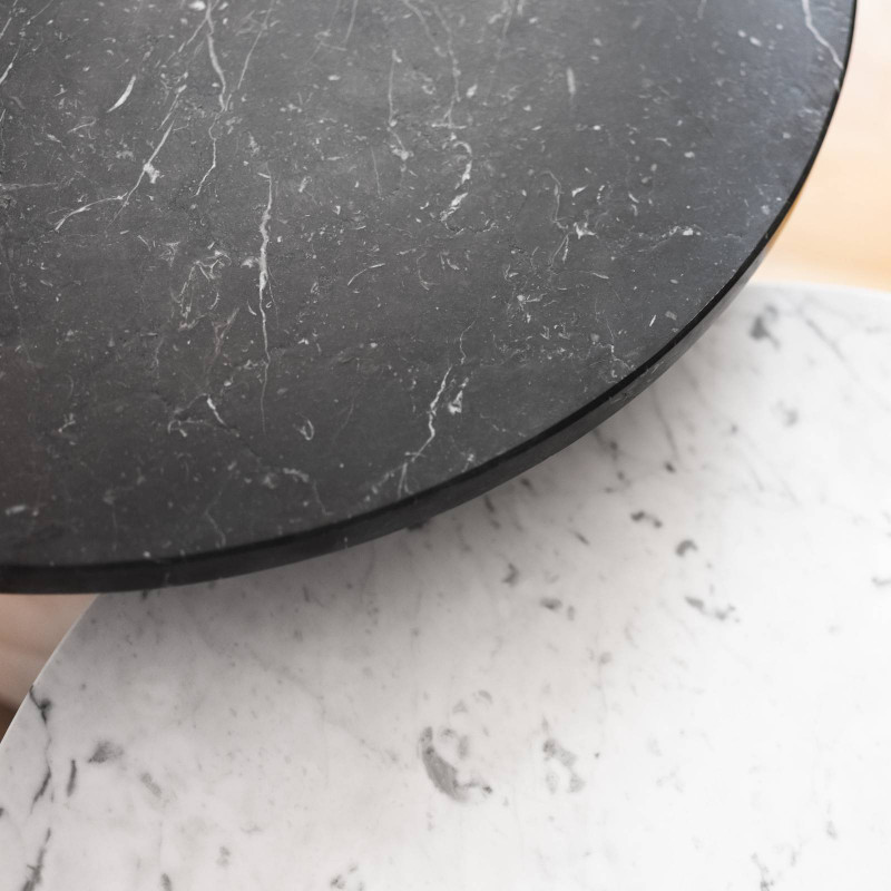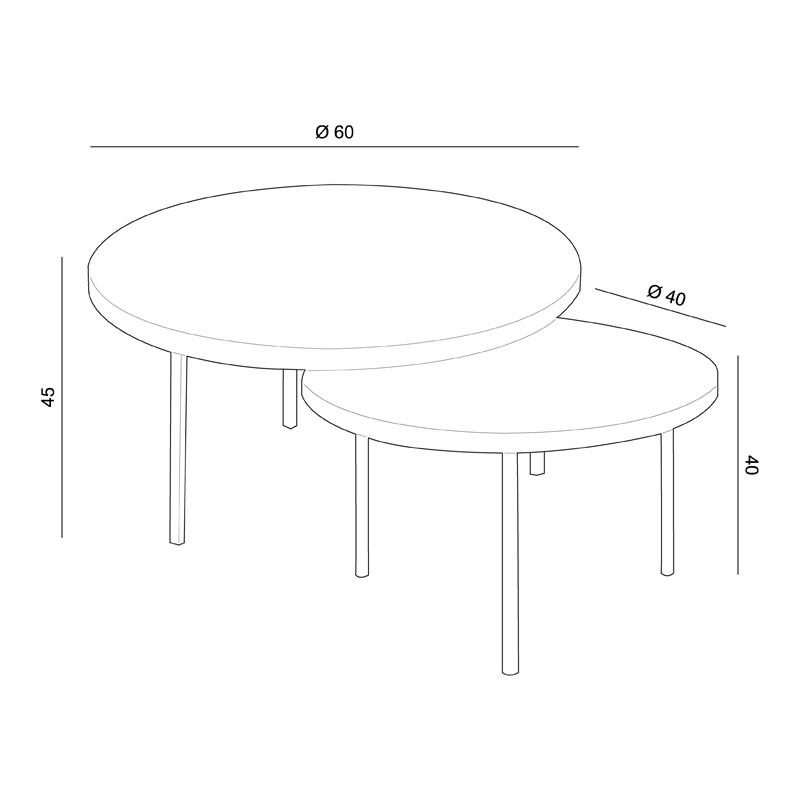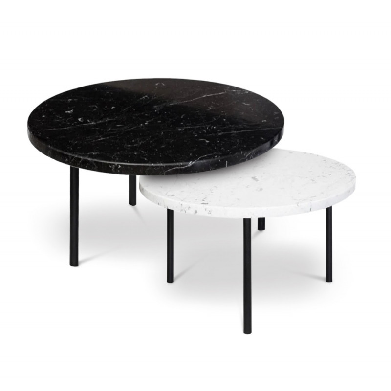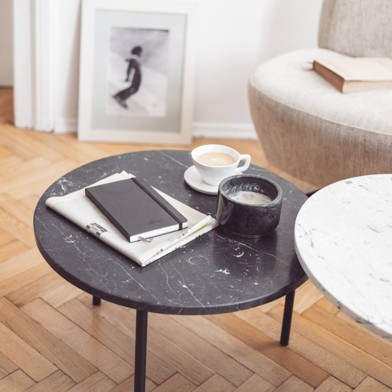 Zestaw składa się z dwóch stolików - Svart oraz Mane, które razem tworzą świetną, kontrastową kompozycje i bardzo praktyczne rozwiązanie dla mniejszych wnętrz. Mniejszy stolik o średnicy 40cm i 40cm wysokości częściowo chowa się pod stolikiem o średnicy 60cm i 45cm wysokości.